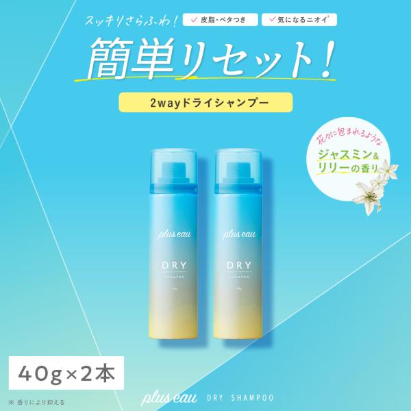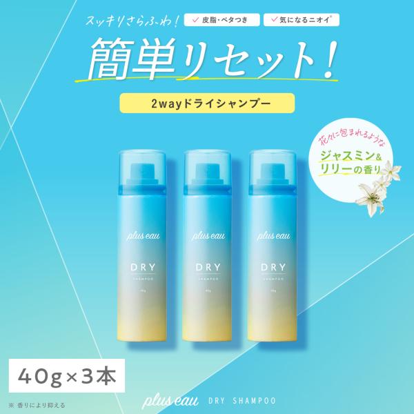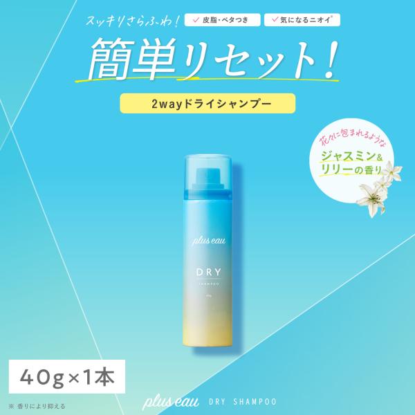 シャンプー プリュスオー Plus eau ドライシャンプー スプレー 40g 携帯用 ジャスミン&リリーの香り 外出先でリセット 皮脂・ベタつき・ニオイ対策に