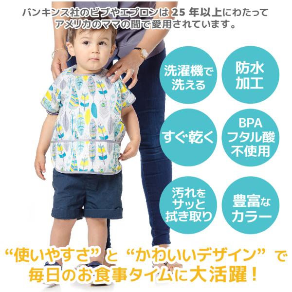 バンキンス bumkins 洗濯機で洗える 防水仕様の 半袖 のジュニアビブ お食事エプロン