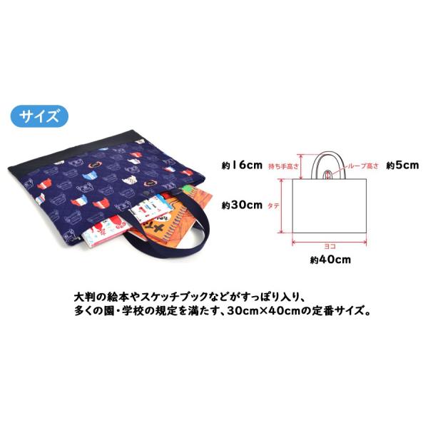 大判の絵本やスケッチブックなどがすっぽり入る定番サイズ。