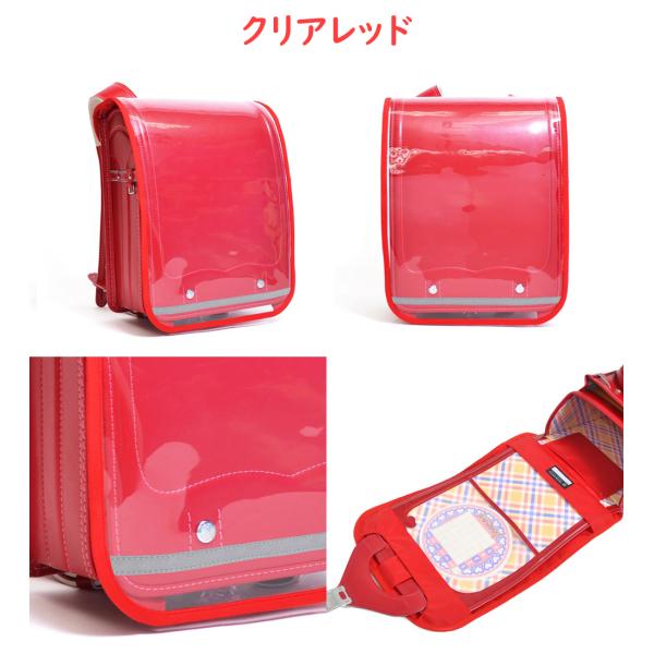 透明ビニール生地を採用しているので、ランドセルのデザインやディティールをそのまま見せてくれます。