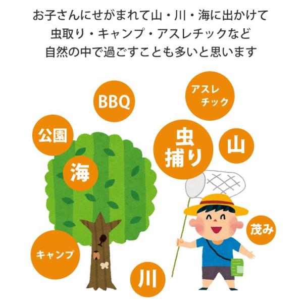 お子さんにせがまれて山・川・海に出かけて虫取り・キャンプ・アスレチックなど自然の中で過ごすことも多いと思います。