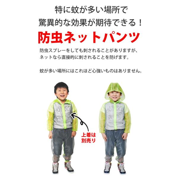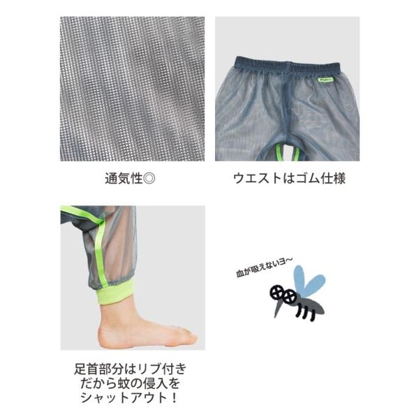 送料無料 蚊よけ 虫除け 防虫 加工 モスキーヒ 子供用メ子供用ネットパンツ メッシュパンツ ズボン サイズ:S M L