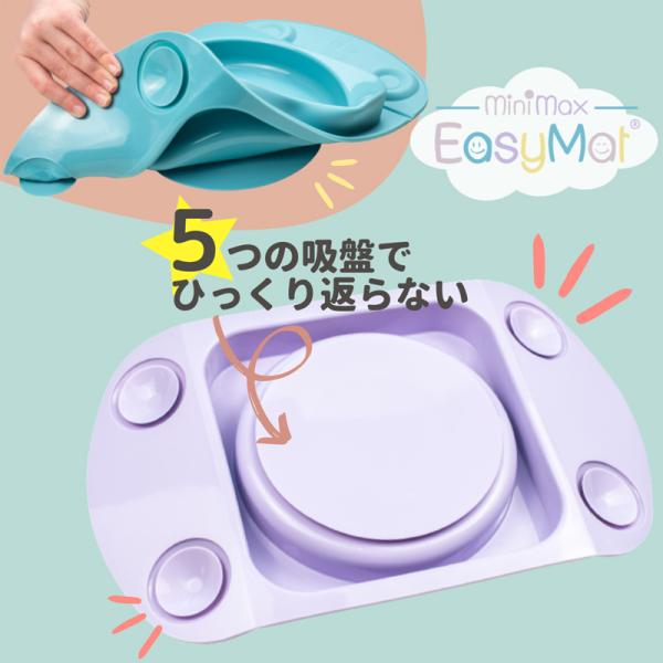 イージーマット EasyMat mini-max ワンプレート ふた付 テーブルに吸着するベビー食器 掃除のストレス激減
