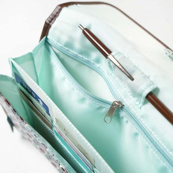 カードポケットが9つ、ファスナー付きポケットが1つ、ペンホルダーが1つ付いています。