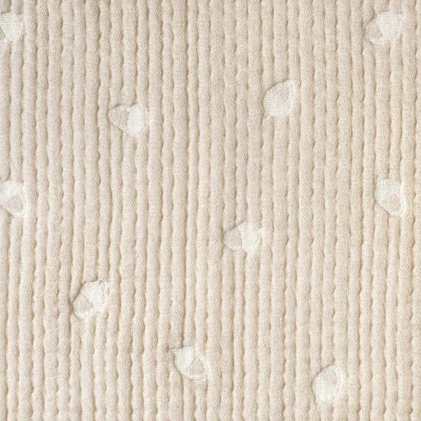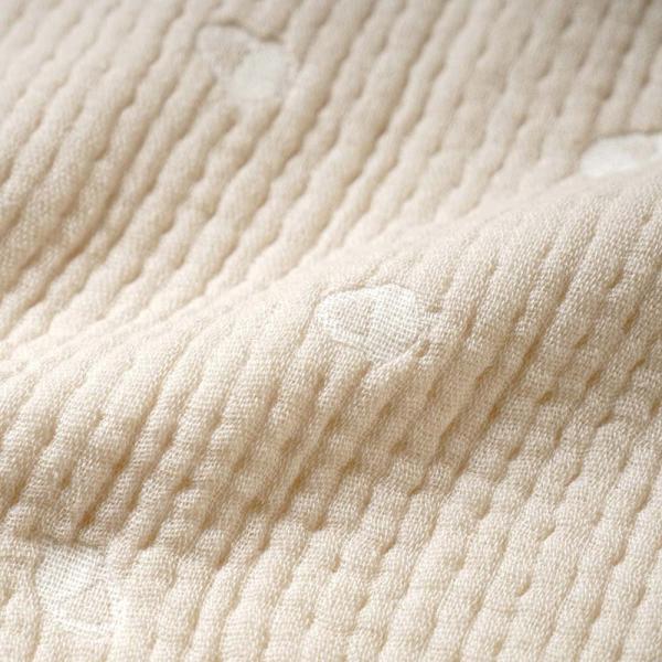 織目の違うガーゼを6層に重ねることで、ふんわり空気を含み、寒い時はあったか、暑い時は汗をすばやく吸収しさらさら。