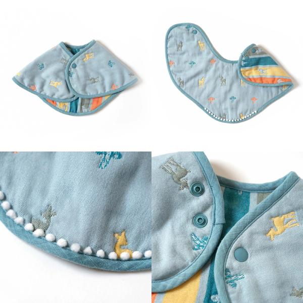 触りが良く、水分もしっかり吸収してくれるふくふくガーゼ(6重ガーゼ)のビブ。