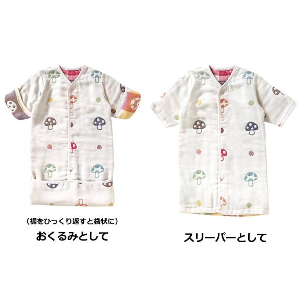 日本製 フィセル ホッペッタ シャンピニオン きのこ柄 6重ガーゼおくるみスリーパー 5369 出産祝い 出産準備