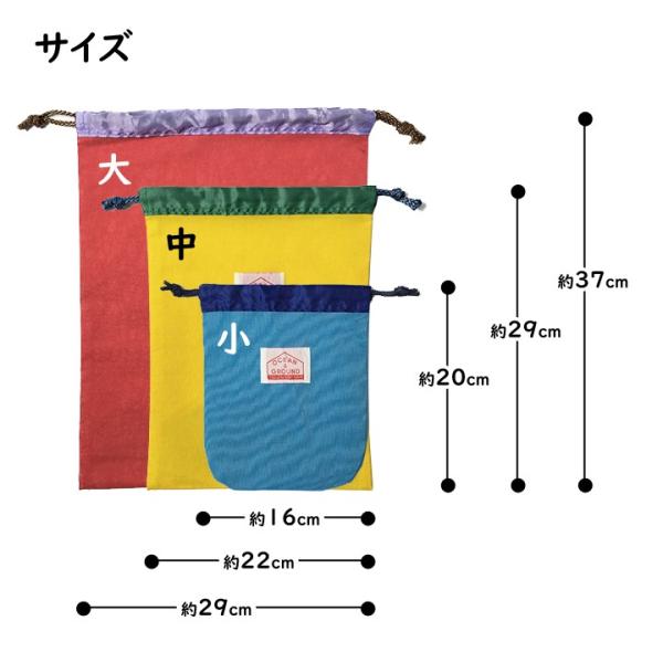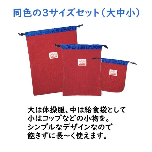 巾着袋 大 中 小 3サイズ GOODAY カラフル 3枚セット 体操服袋 給食袋 コップ袋 無地 子供用 幼稚園 保育園 幼稚園 入園グッズ 小学生