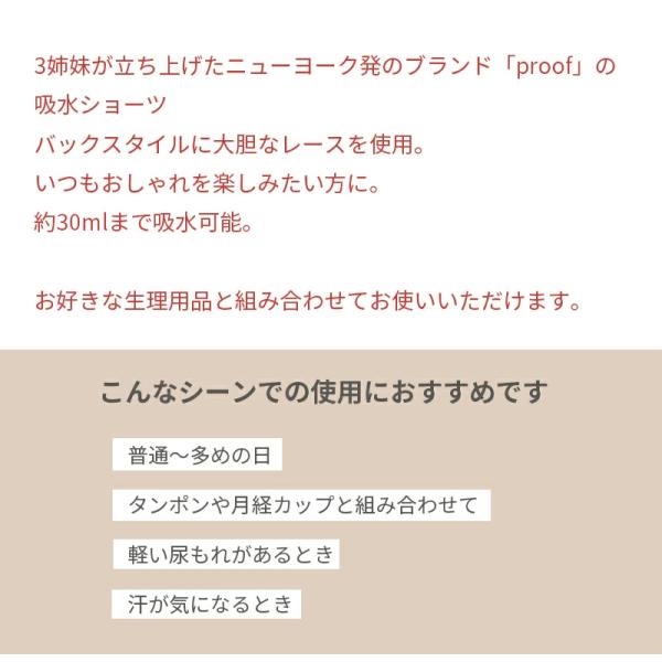 proof レースバック タイプ Lace Back Bikini 吸水ショーツ 生理 レディース サニタリーショーツ 抗菌 防臭 正規品 吸水パッド サニタリー 尿もれ フェムテック