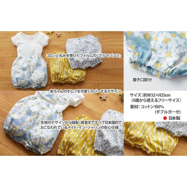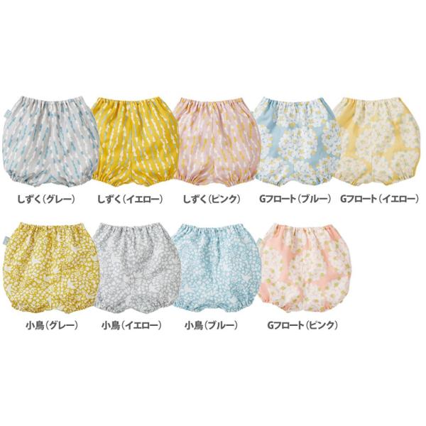 模様作家、岡理恵子さんデザインの二重ガーゼ素材を使用したベビー用ブルマパンツ。