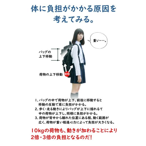 ブックストラップや3Dショルダーストラップなど、重い教科書が体に与える不可を軽減する機能が満載!