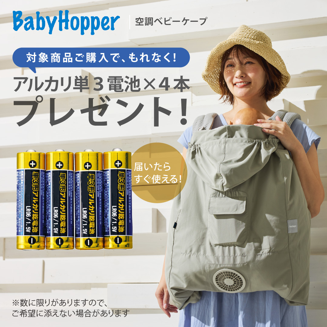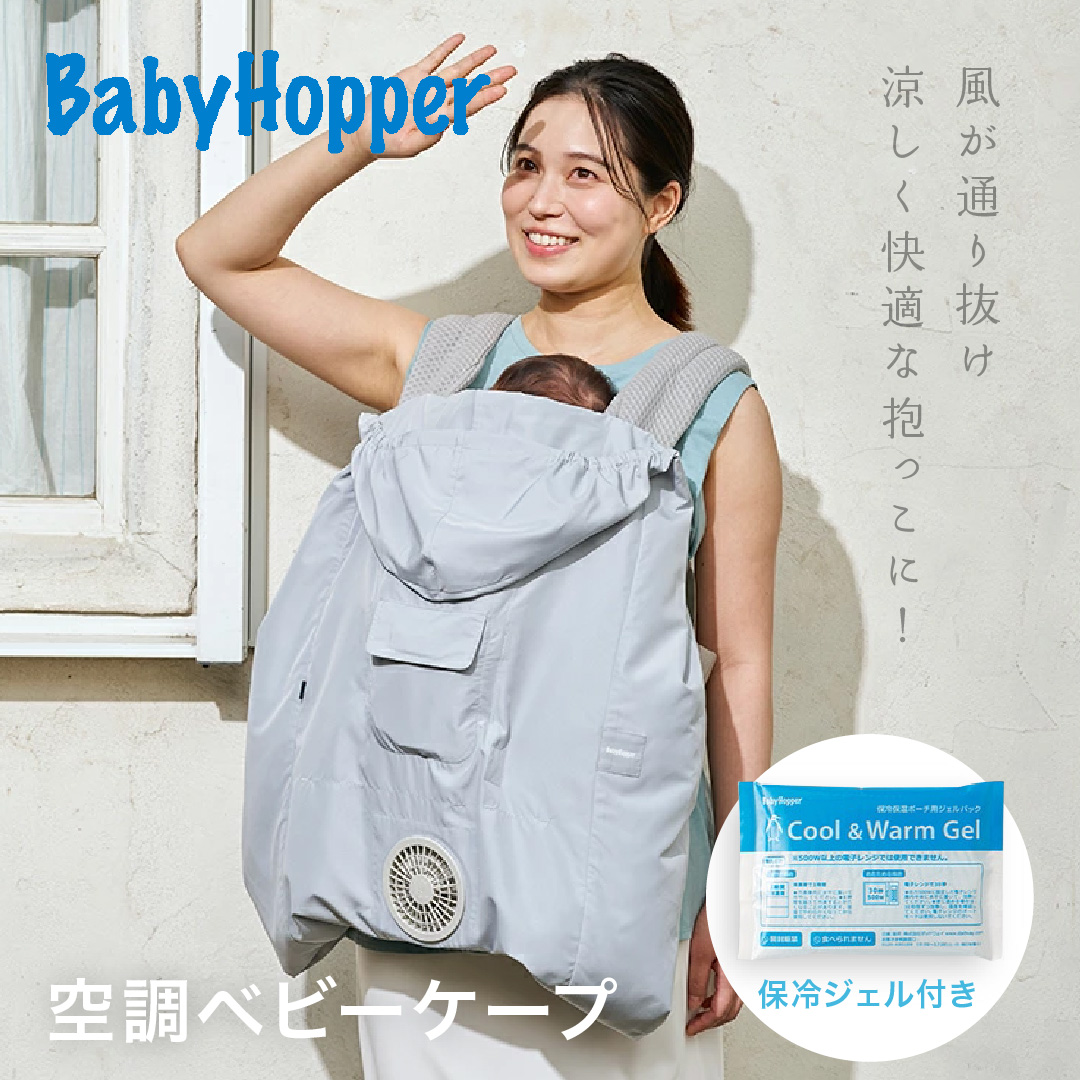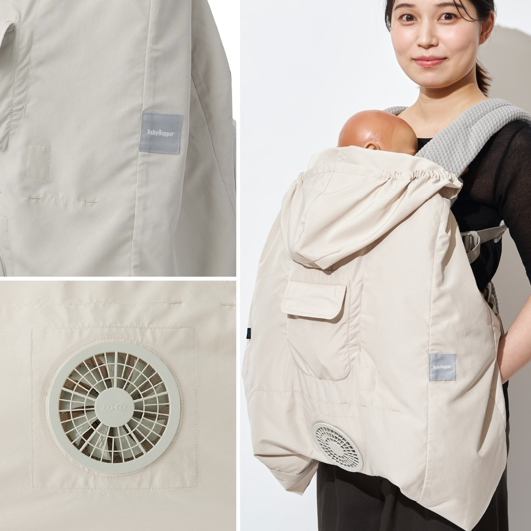 単3電池付 ベビーホッパー 空調ベビーケープ 保冷ジェル付 ベージュ|BabyHopper エルゴベビー対応 抱っこ紐ケープ ファン付きケープ 暑さ対策 UVカット