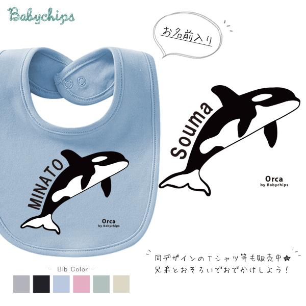 よだれかけ スタイ ビブ 名前入 お食い初め 出産祝い 水族館 さめ 鮫 サメ いるか イルカ プレゼント こども服 よだれかけ アウトドア カワイイ / シャチ