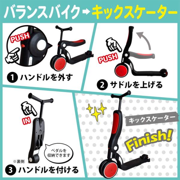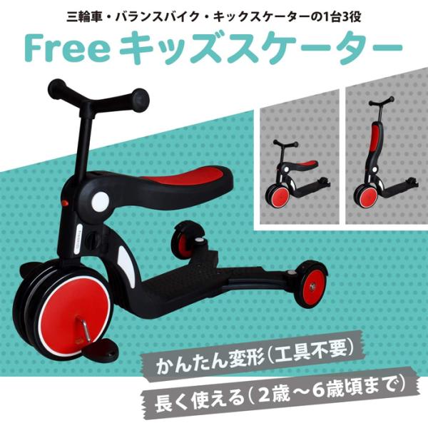 Free キッズスケーター レッド 三輪車 バランスバイク ランニングバイク キックボード ブレーキ付き へんしん 変形 JTC