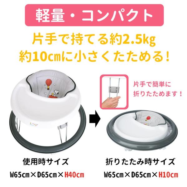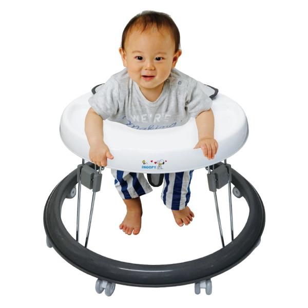 歩行器 スヌーピーよちよちウォーカー グレー 歩行器 赤ちゃん 幼児 ベビーウォーカー 折りたたみ シンプル 丸型【永和】