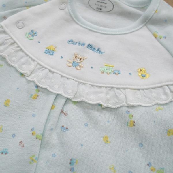 出産祝いギフトにもおすすめの3点セット!プリント総柄 サックス 103023 新生児 ベビー服