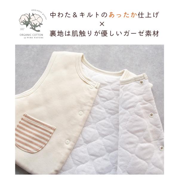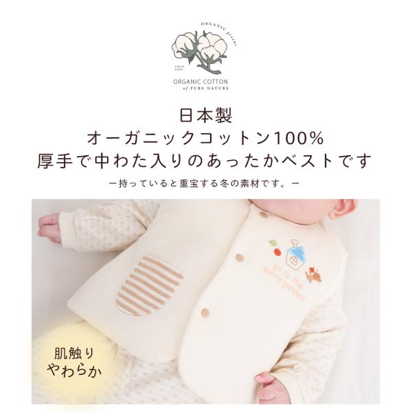 日本製 新生児からOK オーガニックコットン あったか中わた入りベビー用ベスト 防寒 冬用 寒さ対策 ぬくぬく ベビー服 赤ちゃん