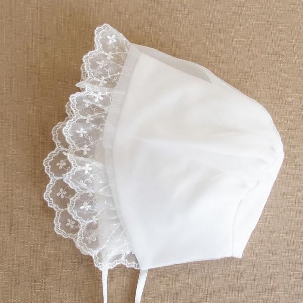 ボンネットフードとベビードレス(ツーウェイタイプ)の2点セット。