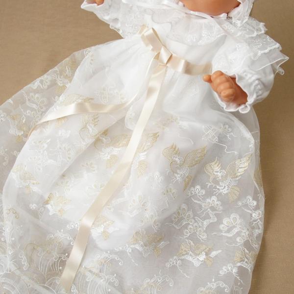 お宮参り用ベビードレス セレモニードレス 春秋素材 豪華な鳳凰刺繍 2段ロングコート