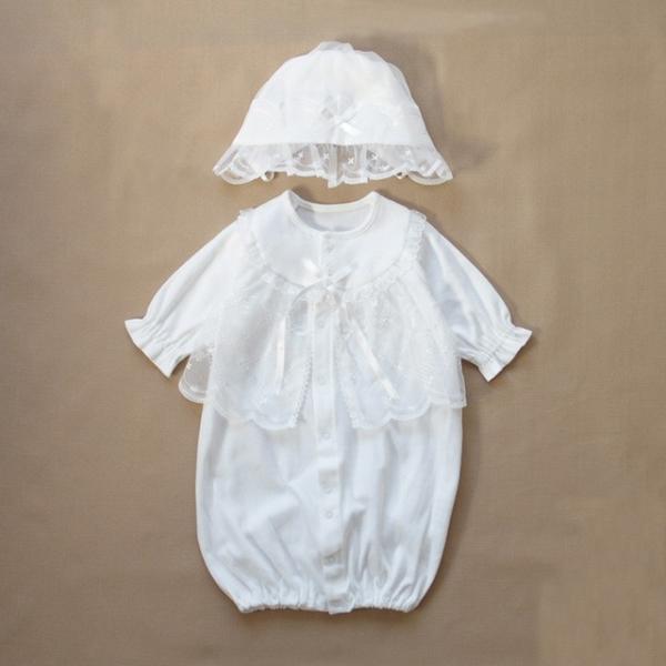夏物 ベビー セレモニードレス 天竺素材 お宮参り用ベビードレス お帽子 2点セット 新生児赤ちゃんのお宮参り 退院時 ニューボーン new born