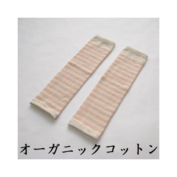 日本製 オーガニックコットン レッグウォーマー ボーダー ピンク