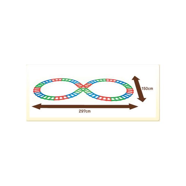 スタンダードセットに付属の曲線レール12枚と合わせると、幅297×150cmの8の字にレールができます。