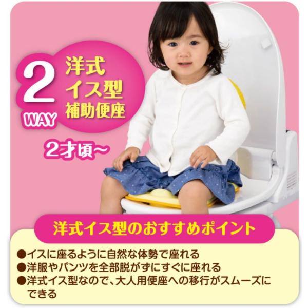 ●お子様の好みに合わせて座り方が選べる多機能な2WAY補助便座です。(1WAY:取っ手付き型補助便座、2WAY:洋式イス型補助便座として)