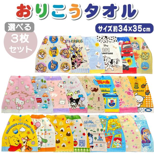 おりこうタオル 選べる3枚セット 抗菌防臭 ゴム・ボタン付き おてふきタオル タオルエプロン お食事エプロン スタイ 送料無料 2026