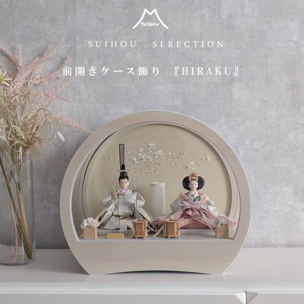 雛人形 ひな人形 ケース飾り 前開き ドーム型 ホワイト木目 アクリルケース コンパクト ナチュラル お雛さま ケース 二人飾り 親王飾り