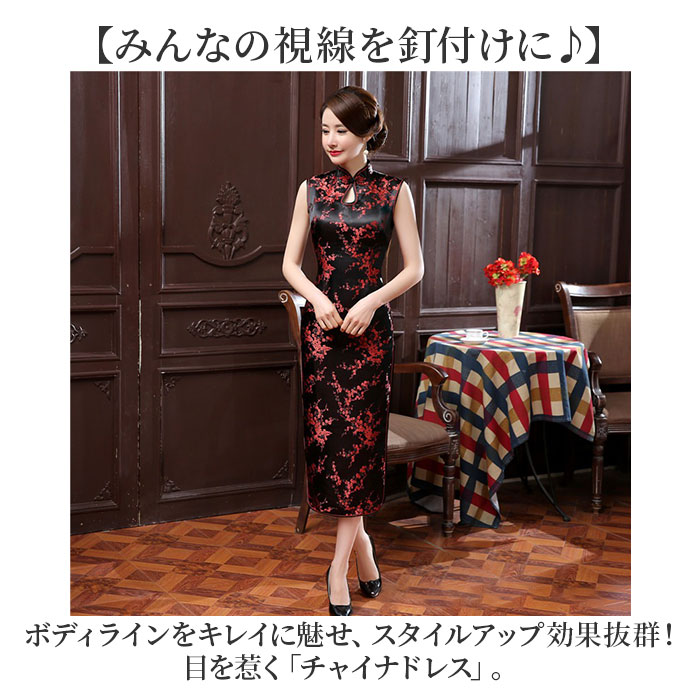 チャイナドレス ノースリーブ 通販 チャイナ服 ワンピース チャイナ パーティードレス ロングワンピース ロングドレス レディース チャイナ風 コスプレ