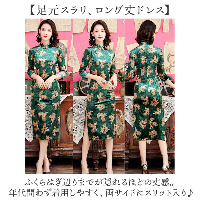 チャイナドレス ミモレ丈 レディース 通販 コスプレ チャイナ服 セクシー ドレス 衣装 ひざ下 膝下 ワンピース チャイナ コスチューム 大人 膝下丈