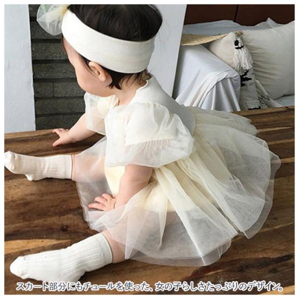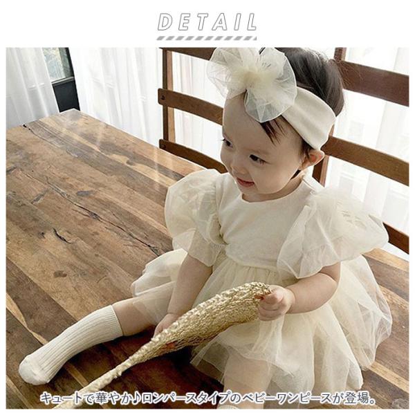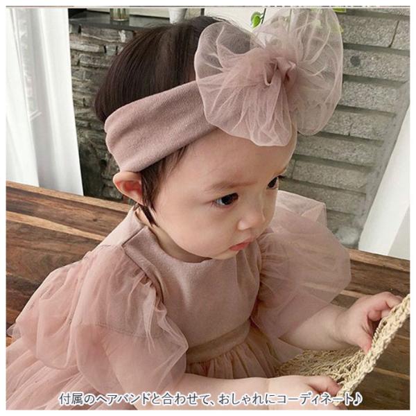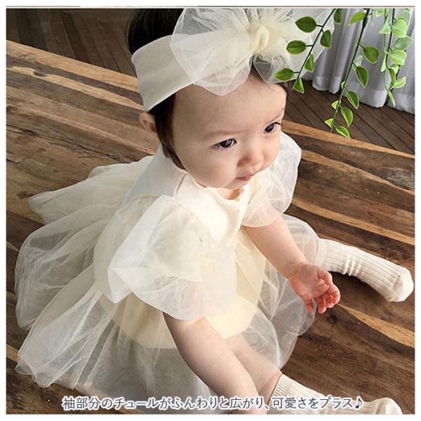 ベビー ワンピース 80 通販 半袖 赤ちゃん baby キッズ ロンパース チュール セレモニードレス ベビードレス フォーマル ドレス ベビー服 ヘアバンド付き ベビー