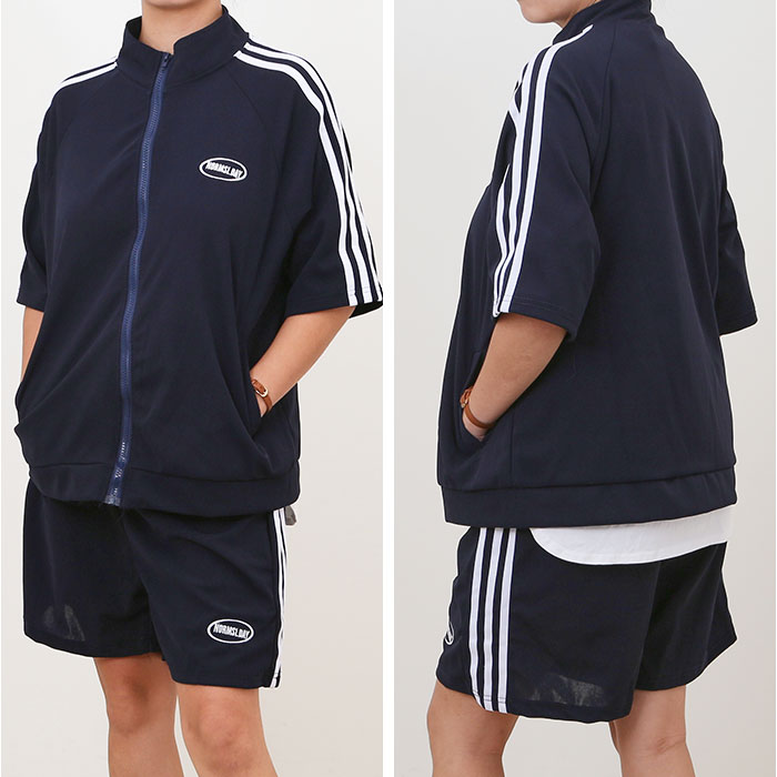 スウェット セットアップ 五分袖 レディース 通販 ジャージ ハーフパンツ ショートパンツ ジャケット パンツ スポーツウェア 5分袖 サイドライン スウェット