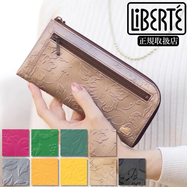 リベルテ 財布 長財布 レディース L字ファスナー 牛革 薄型 スリム 型押し LiBERTE フラワー 0352228 0356000
