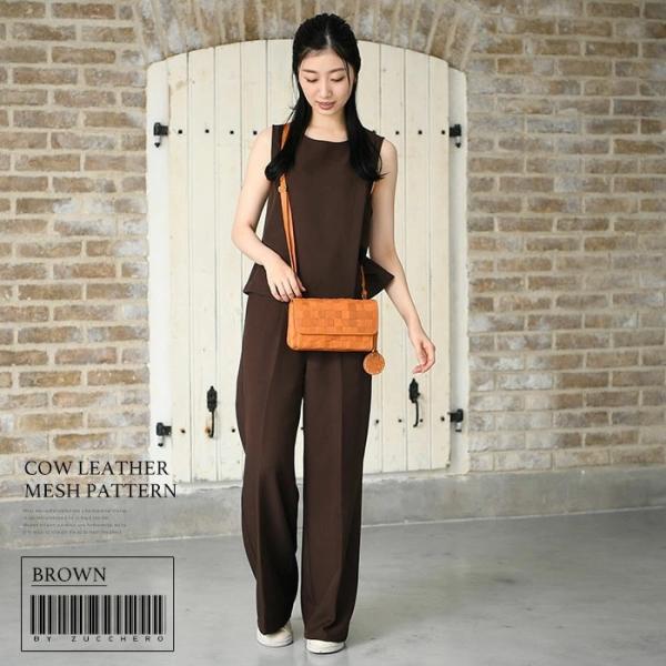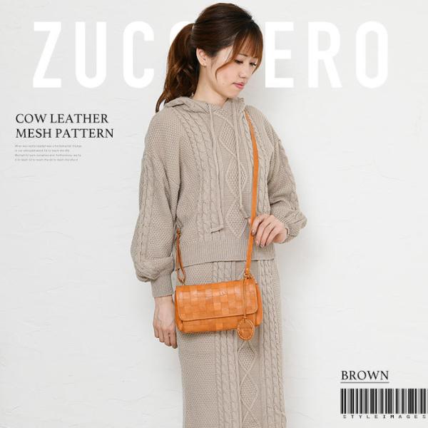 レディース ショルダーバッグ メッシュ ヌメ革 お財布機能付き ダブルファスナー開閉 zucchero ズッケロ 40091