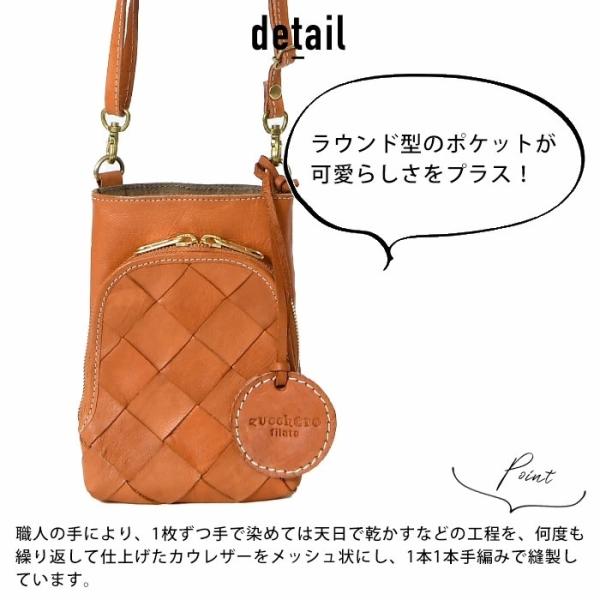 ショルダーバッグ メッシュ スマホ ポシェット 背面ポケット付き レディース ヌメ革 zucchero ズッケロ 49445