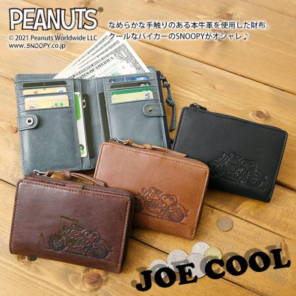 レディース 短財布 二つ折り L字ファスナー スナップボタン開閉 キャラクター 型押し SNOOPY スヌーピー 73320