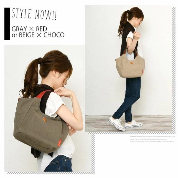 バイオ綿帆布×本革 背面ポケット付き コンビバッグ