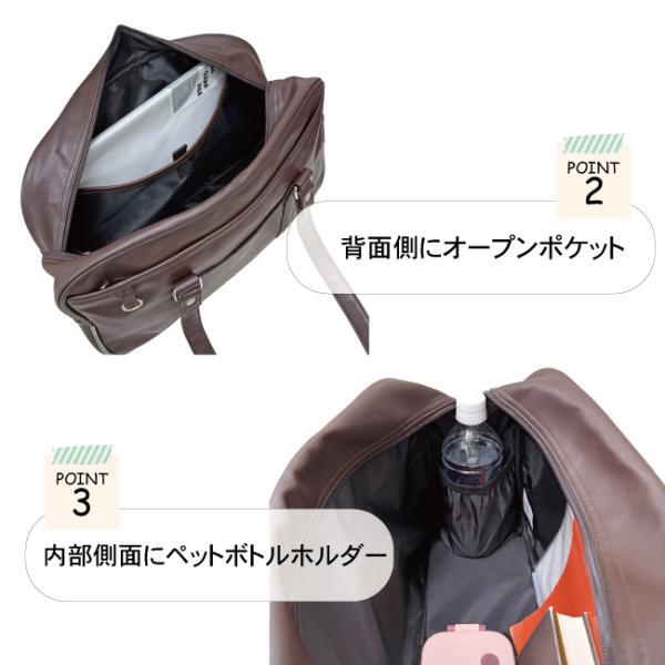外ポケットや内ポケットも充実しており、スマホや定期券などの小物も整理しやすく、使い勝手も◎。