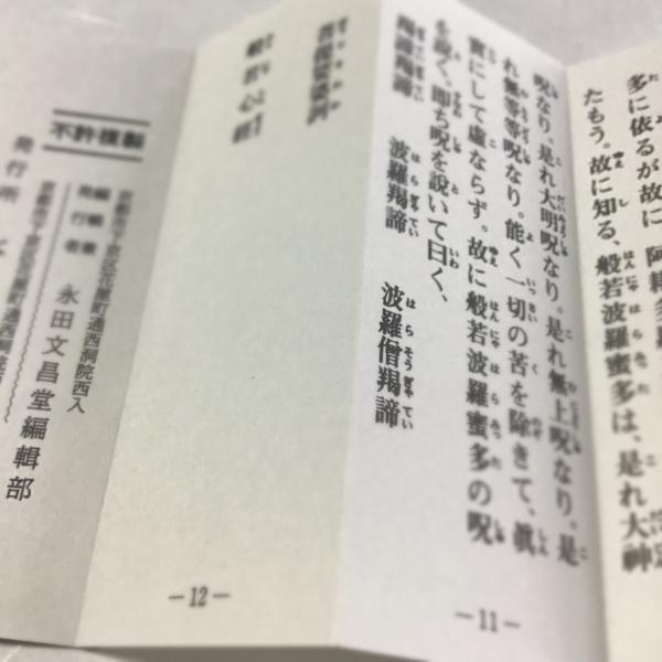 永田文昌堂発行の寸珍 般若心経(サイズ約8.3cm x 3.6cm)