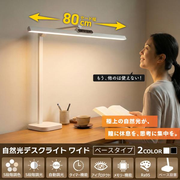 『照明士推奨/1年保証』デスクライト LED 自然光デスクライト 目に優しい 調光 調色 Ra95 ワイド セード幅80cm ベース おしゃれ 勉強 学習机