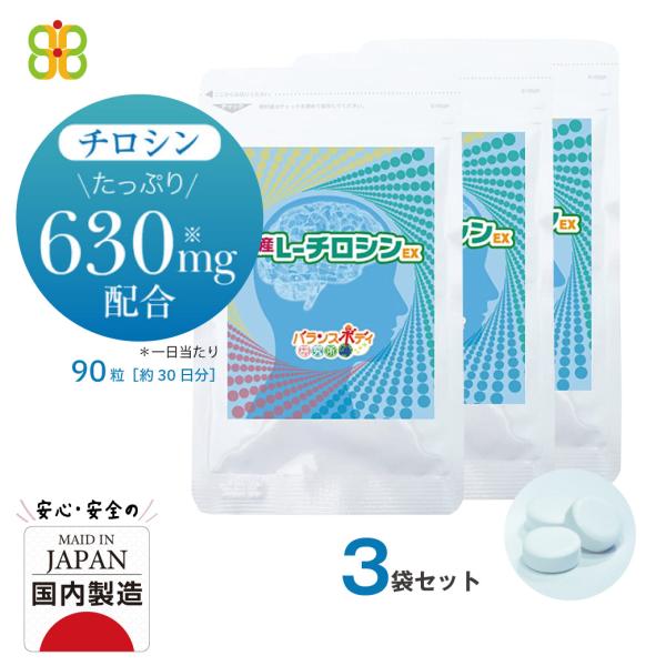 チロシン 国産L-チロシンEX 90粒 サプリ やる気 ドーパミン サプリ サプリメント メンタルヘルス メール便 3袋セット 白髪