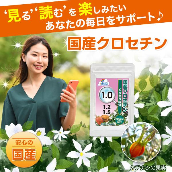 サプリ 目 ピント調整 効果 ブルーベリー おすすめ ルテイン 老眼 不要 国産クロセチン 1.0 クチナシ 天然 283mg×30粒 サプリメント