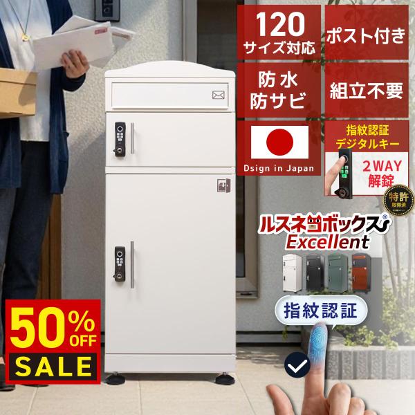 宅配ボックス 補助金 戸建 防水 複数投函 ポスト 一体型 おしゃれ 置き配ボックス 大型 郵便受け 置き型 ルスネコボックス excellent 指紋認証キー 鍵不要