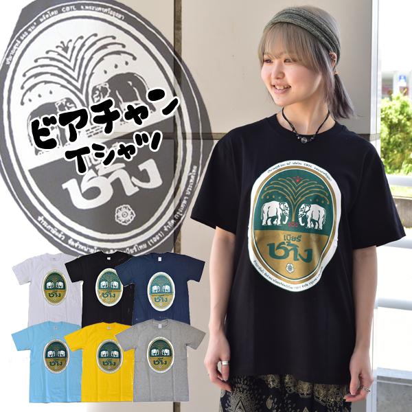 ビアチャン Tシャツ 半袖 半袖シャツ メンズ エスニック アジアン エスニックファッション バリブラン 夏 ブラック ホワイト イエロー タイ