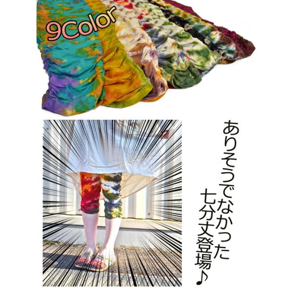 レギンス レディース 夏 綿 コーデ 50代 バリブラン タイダイクシュクシュレギンス7分丈 足細効果 タイダイレギンス7分丈 アジアンレギンス スパッツ