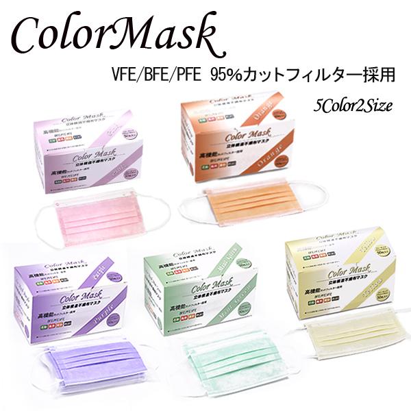 パステルカラー 使い捨てマスク 50枚入り フリーサイズ 小さめサイズ カラーマスク
