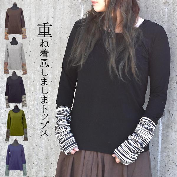 しましまロンT ロンT エスニックトップス 長袖 エスニック レディース アジアントップス アジアン