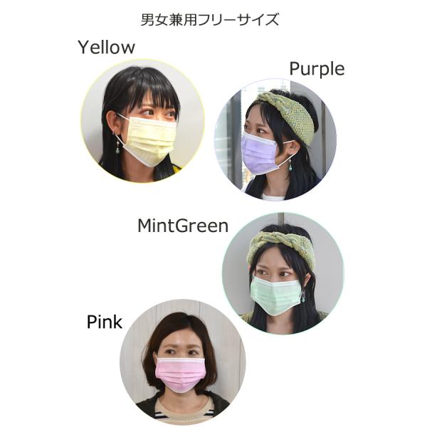 パステルカラー 使い捨てマスク 50枚入り フリーサイズ 小さめサイズ カラーマスク