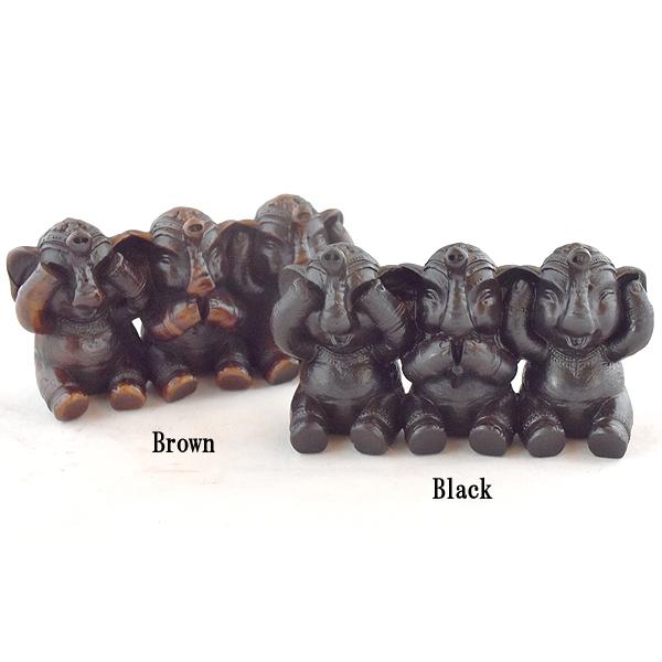 「見ざる、聞かざる、言わざる」3匹の象(ゾウ)置物 飾り 動く アジアン雑貨 エスニック雑貨 バリブラン